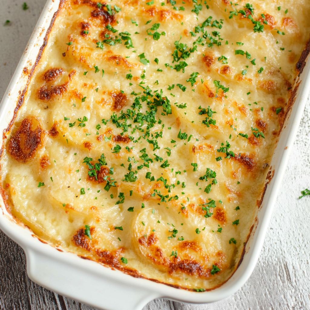 • Use starchy potatoes: Opting for starchy potatoes like Russets or Yukon Golds ensures a creamier texture and helps the layers meld beautifully together.
