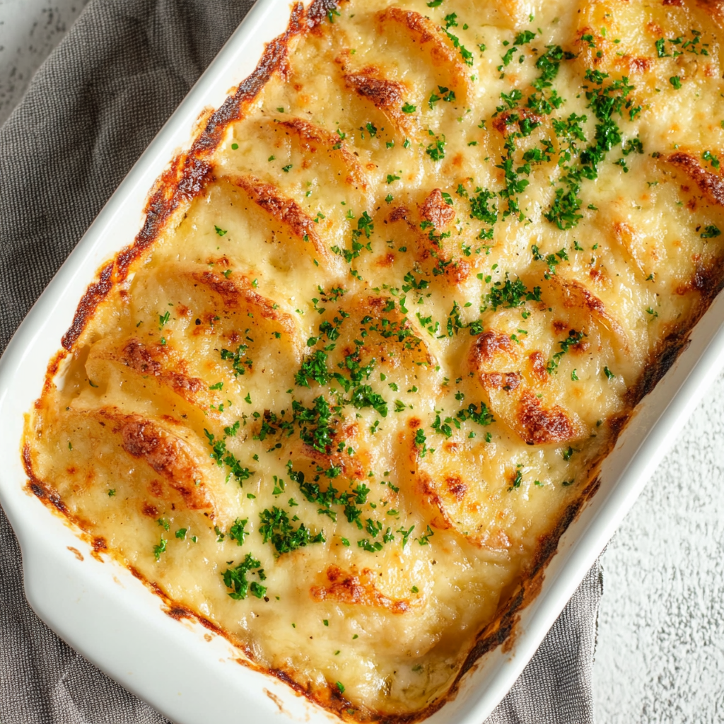Indulge in the creamy goodness of Roasted Garlic Potatoes au Gratin, a dish that elevates simple potatoes into a comforting masterpiece. Layers of thinly sliced starchy potatoes are infused with the sweet, mellow flavor of roasted garlic and enveloped in a rich, creamy cheese sauce. Baked to golden perfection, this dish is not only a crowd-pleaser but also incredibly versatile, making it suitable for family dinners or festive gatherings. With minimal prep and maximum flavor, Roasted Garlic Potatoes au Gratin promises to bring warmth and joy to your table.